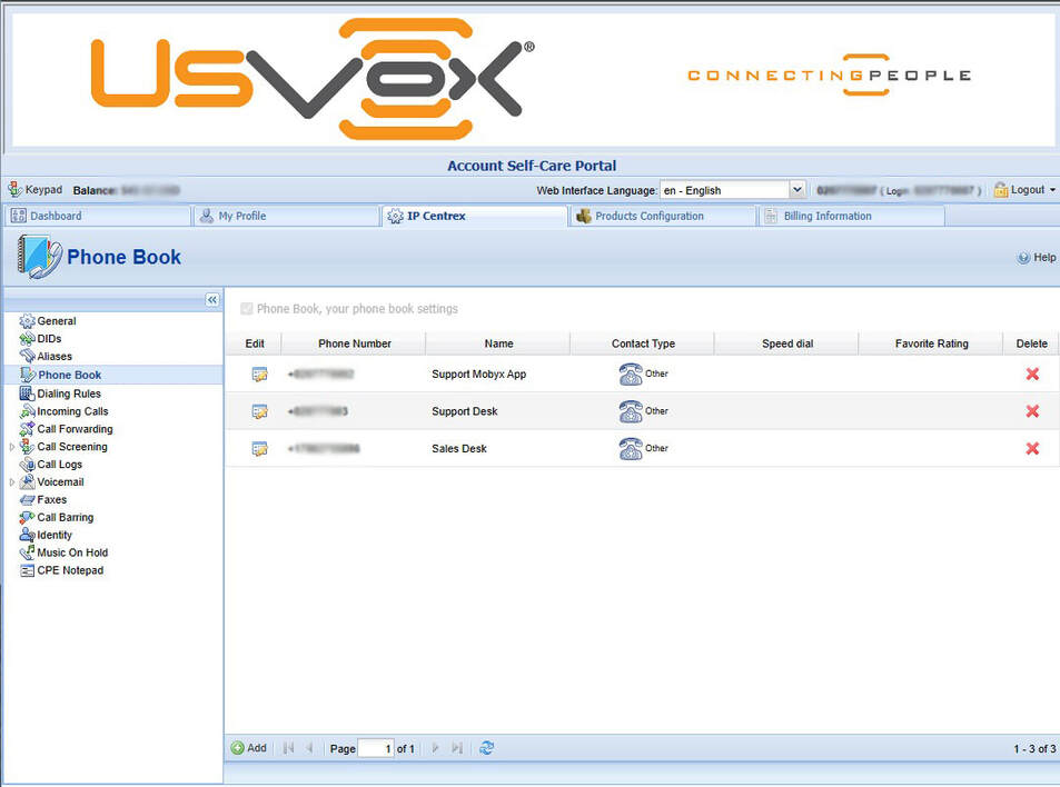 Note, that this page is only active if your provider has enabled the Phone Book feature for you. Depending on your needs, you may activate or deactivate the Phone Book by selecting or clearing the checkbox at the top.