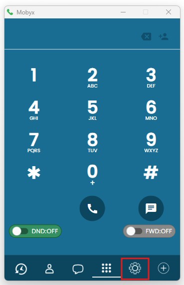 Open the Mobyx Desktop application and tap the ⚙️ Settings icon located at the bottom of the interface.