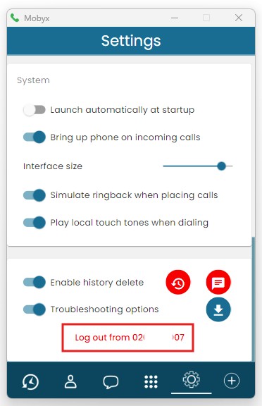 If you're experiencing issues with the softphone or need to reconfigure it for a different extension, you can reset the Mobyx Desktop application by following these steps: