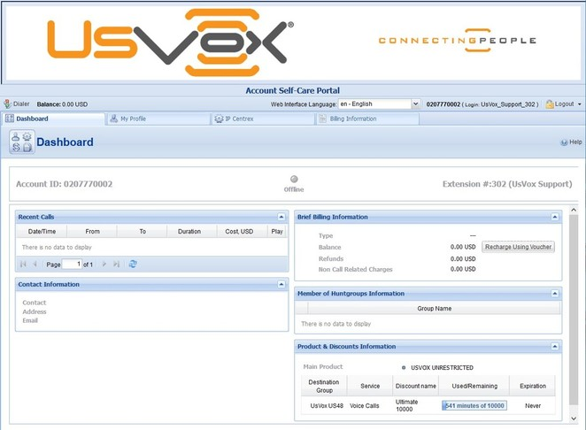 π₯οΈ UsVox Extension Interface (Account Self-Care Portal) Mobyx Web