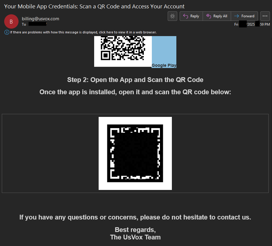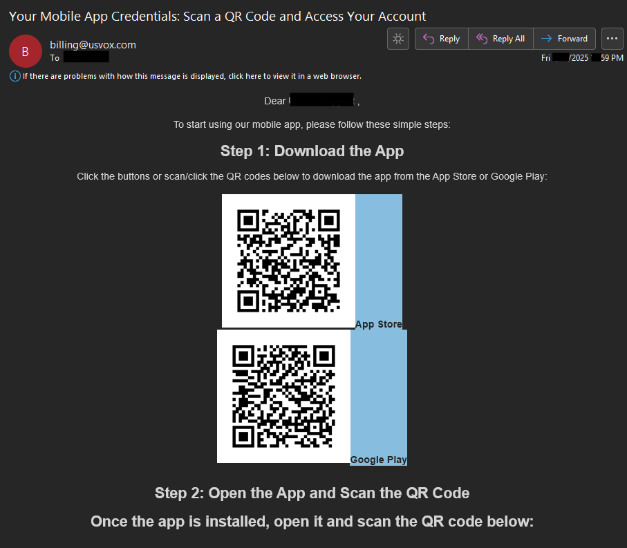 3️⃣ Using your phone’s camera, scan the second QR code in the email — this code contains your unique extension credentials.